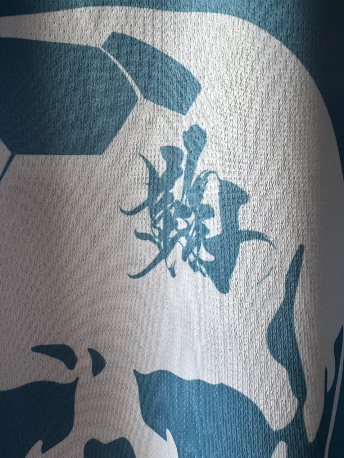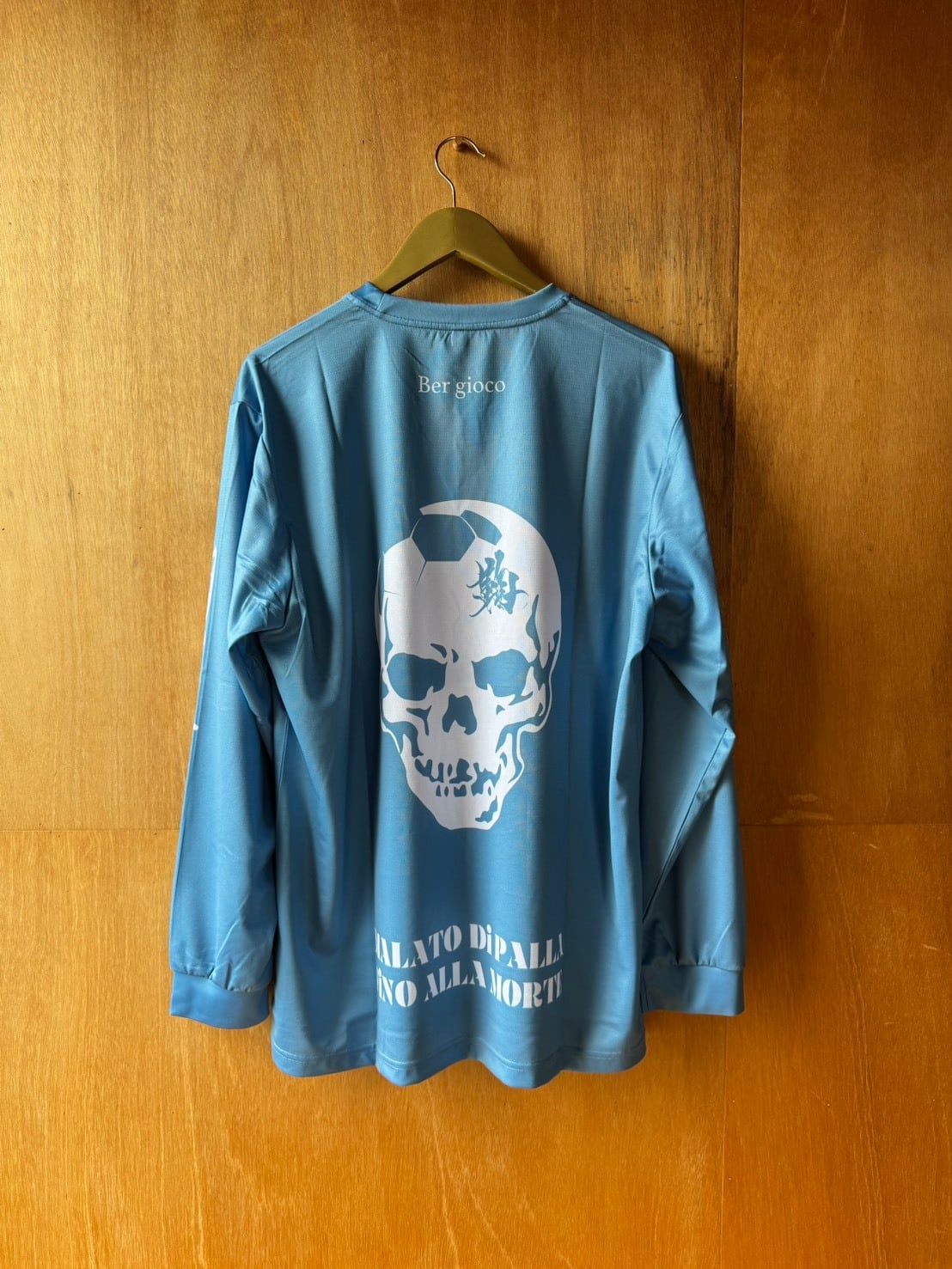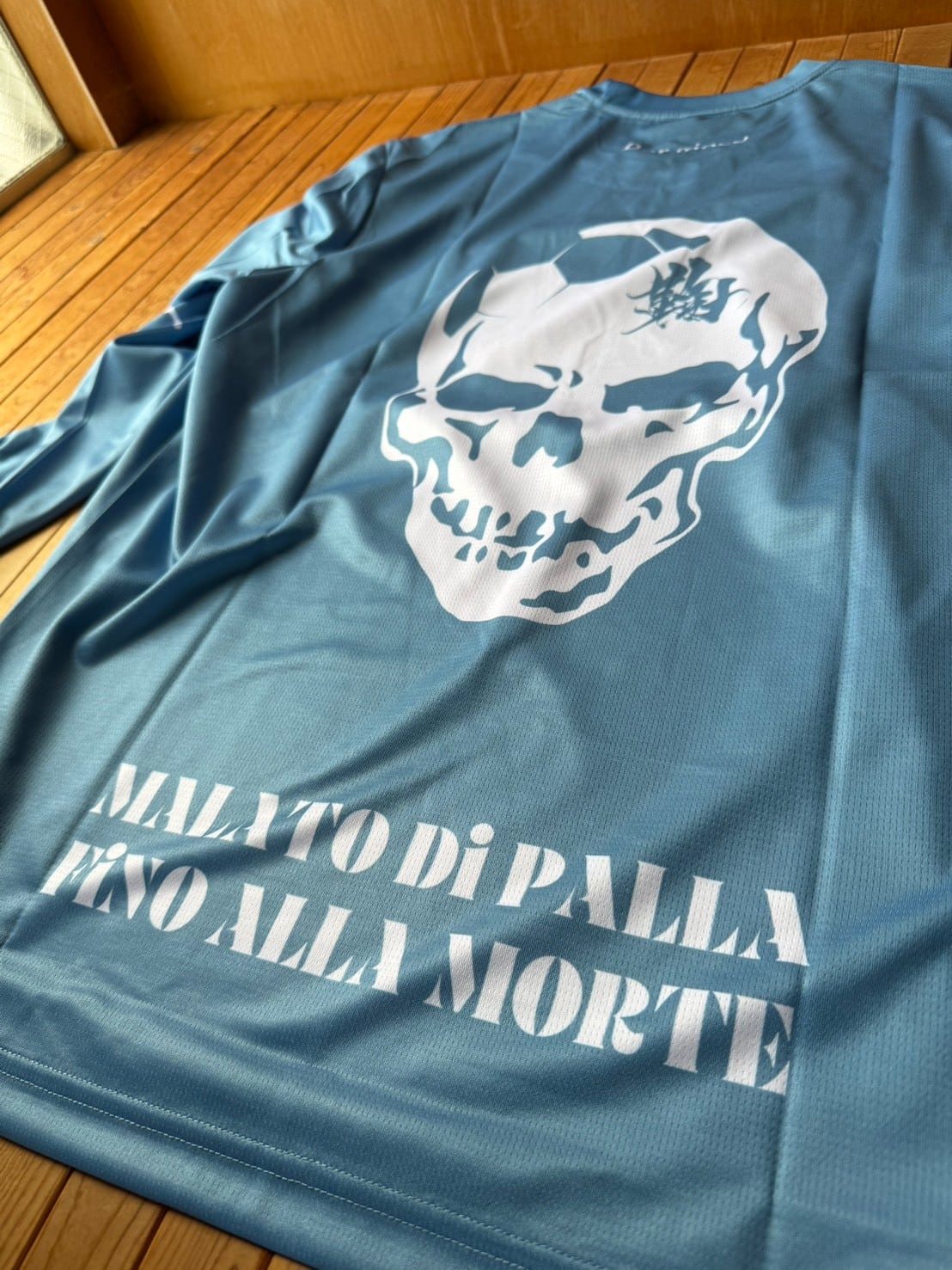 シャツの左袖に「鞠中毒」、バックプリントのフットボールスカルに「鞠」を使わせて頂き、