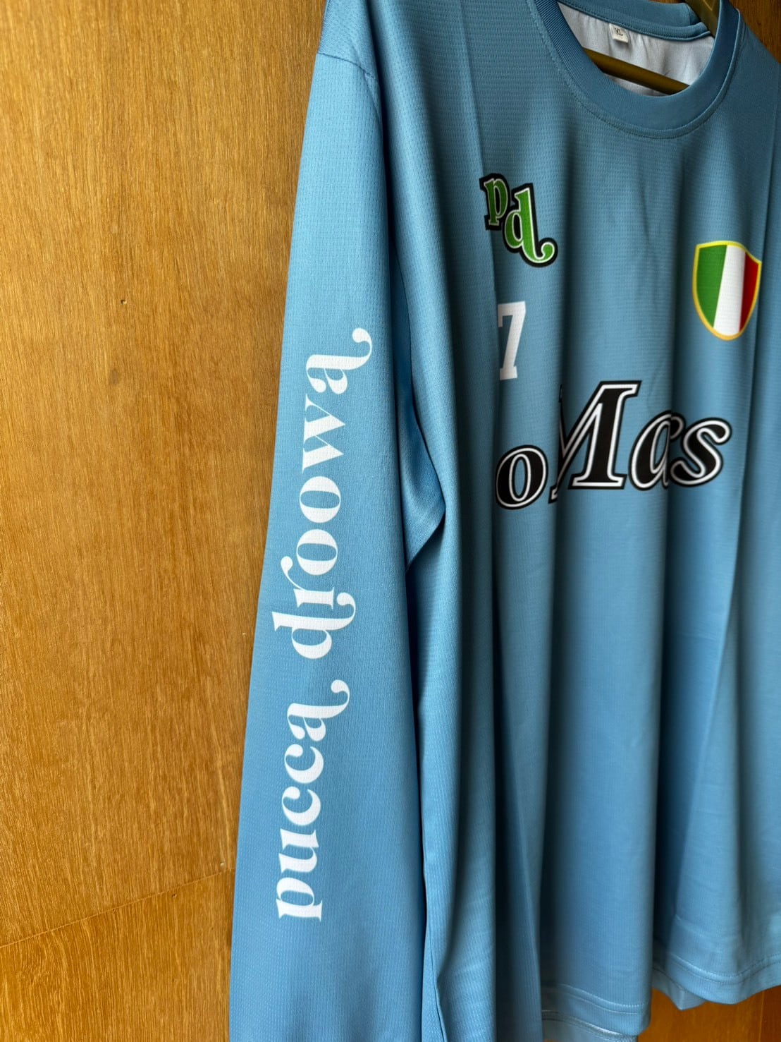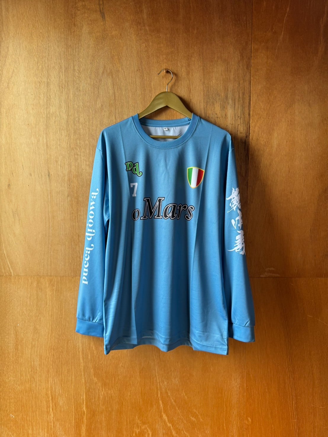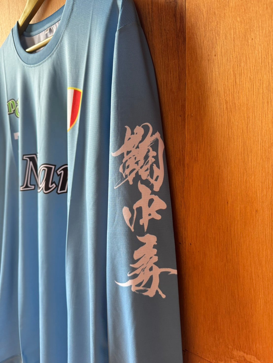 シャツの左袖に「鞠中毒」、バックプリントのフットボールスカルに「鞠」を使わせて頂き、
