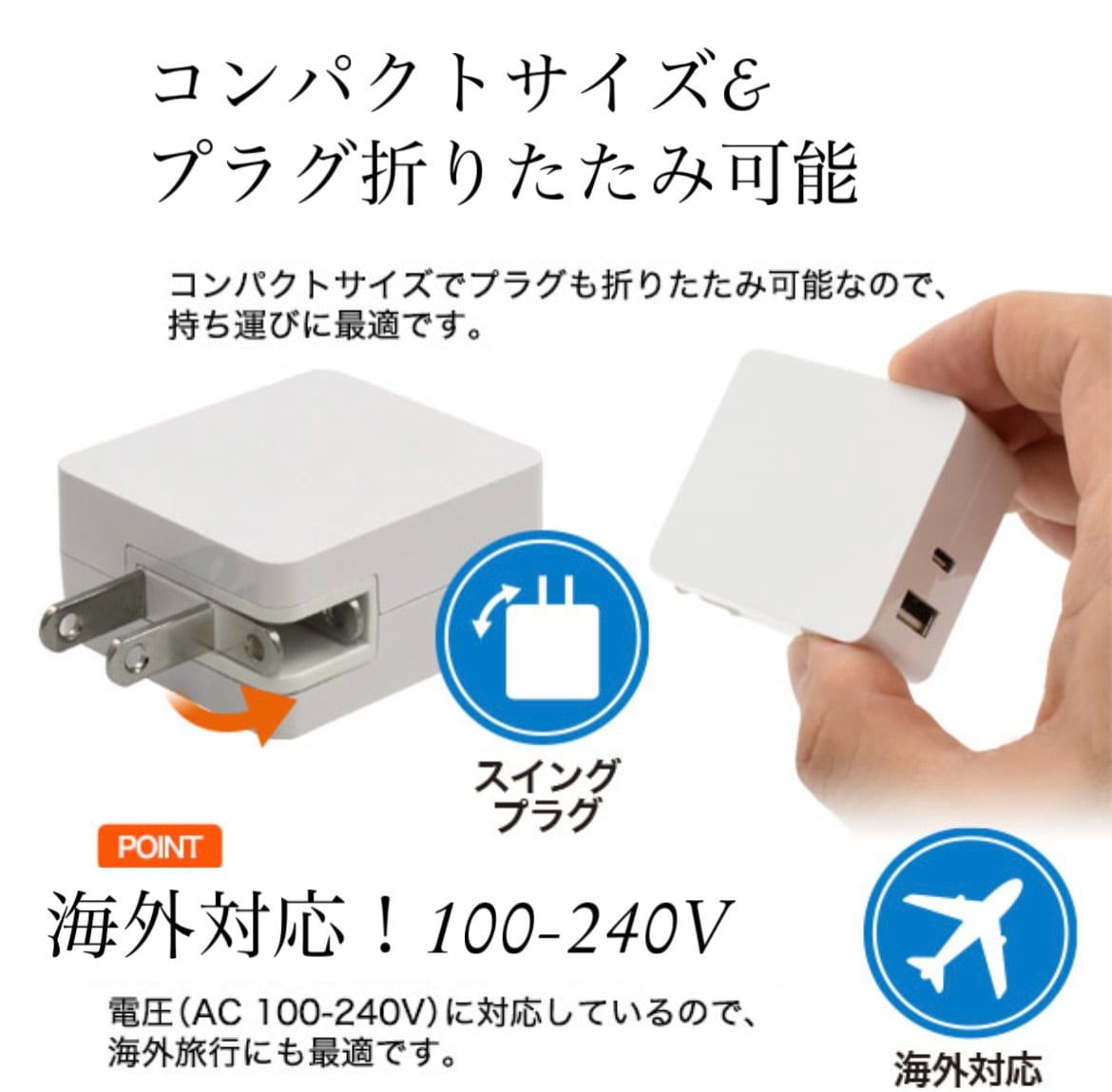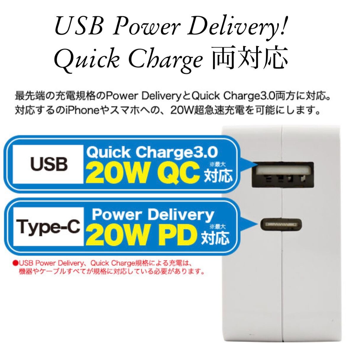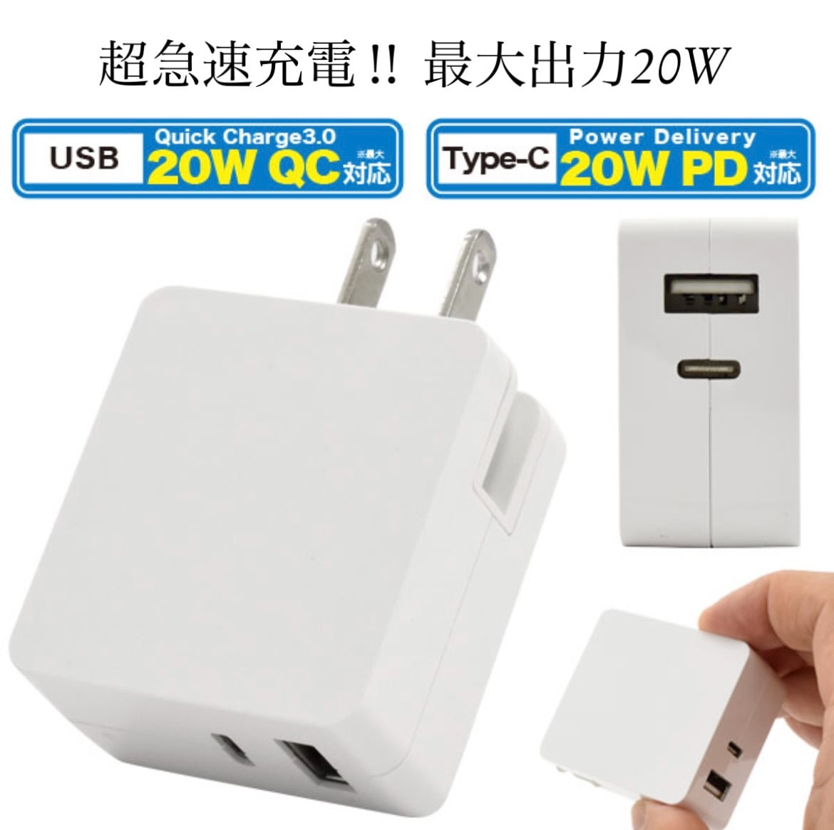 ■USB PDとQC両対応!20Wの超急速充電USBアダプタ!(USB-ACアダプタ)