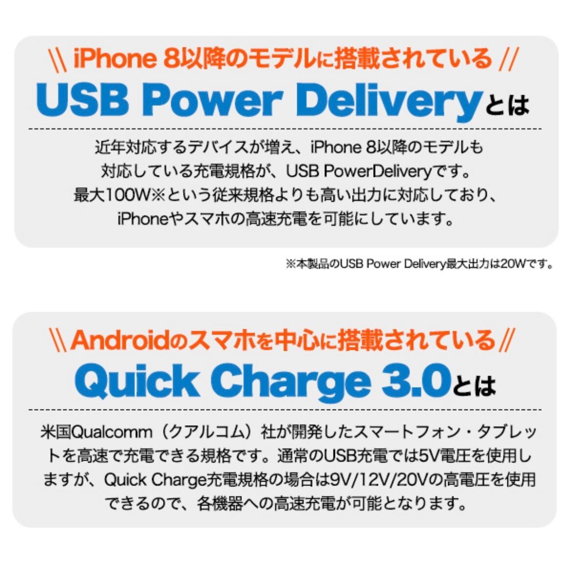 PD(USB Power Delivery)対応のスマートフォンに、最大20Wの超急速充電が可能!